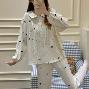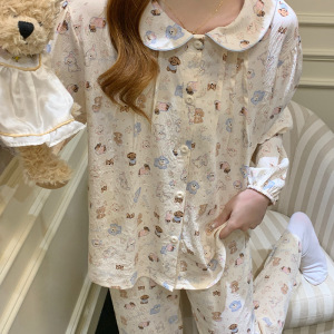 云朵棉睡衣女春秋季新款甜美ins娃娃领开衫长袖可外穿家居服套装