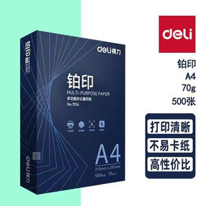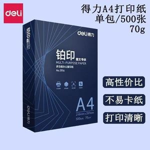 得力铂印a4打印纸70g复印纸白纸木浆纸品80克草稿纸办公用纸批发