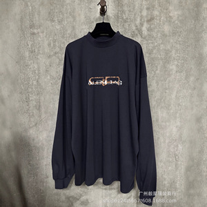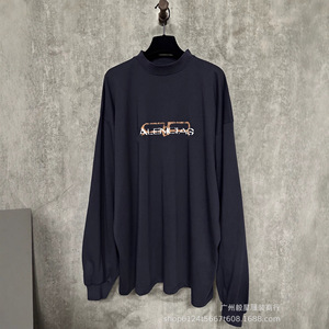 高版本B家巴黎宽松落肩时尚百搭欧美男女同款双B标语高领长袖T恤