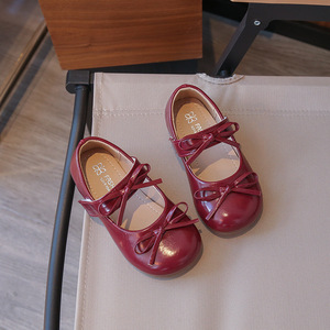 女童小皮鞋秋季新款蝴蝶结女宝宝鞋子银色小女孩公主鞋中小童皮鞋