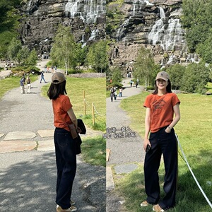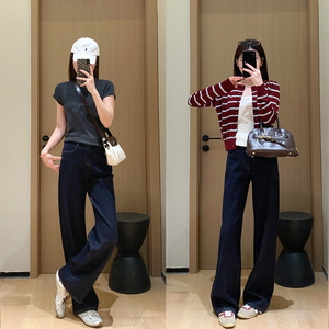 泽黛佳伊早秋R标原牛!天丝棉wan向弹明线阔腿裤复古松弛牛仔裤女