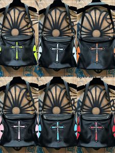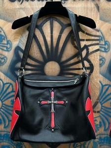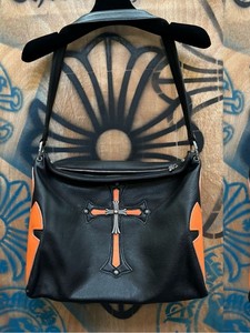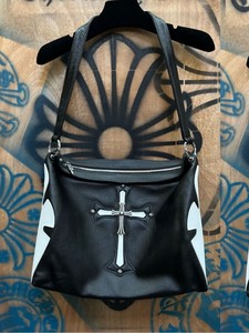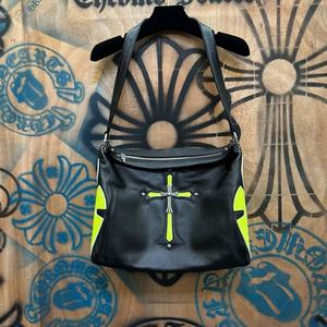 美式CH克罗情侣款女士摔纹牛皮拼色十字架925银大鸡块挎包单肩包