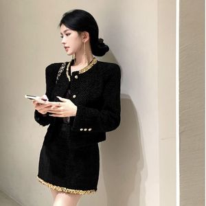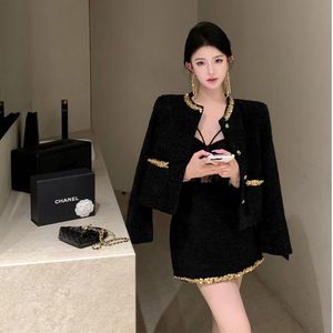 秋冬新款富家千金小香风气质套装法式名媛亮片短外套半身裙两件套