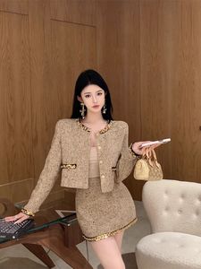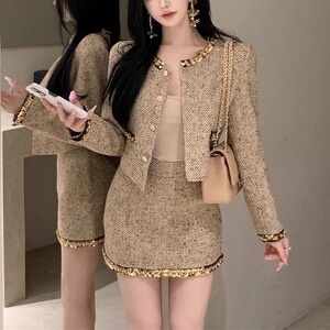 法式小香风套装粗花呢亮片长袖短外套女秋冬穿搭包臀半身裙两件套