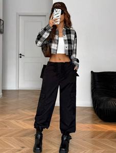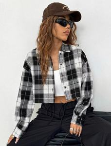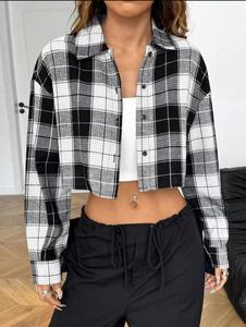 2025跨境新款欧美外贸女装时尚翻领格子衬衫亚马逊开衫衬衣短外套