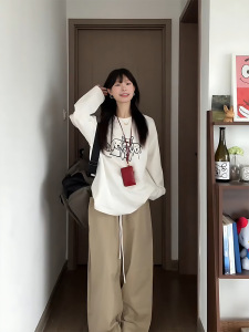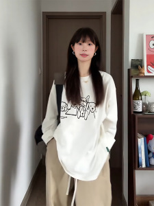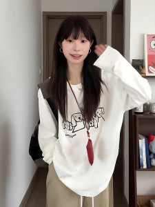 胖mm小狗大码长袖T恤女秋季百搭慵懒风设计感小众韩系打底衫上衣
