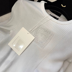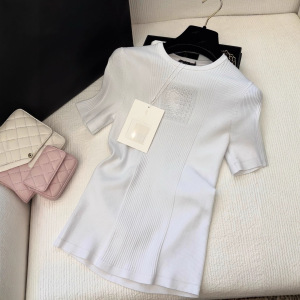 2025早秋新款南油cha时髦韩系简约气质修身镂空圆领短袖针织衫女