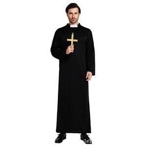 万圣节服装西方派对舞会衣服舞台表演男全黑长袍教父角色扮演服装