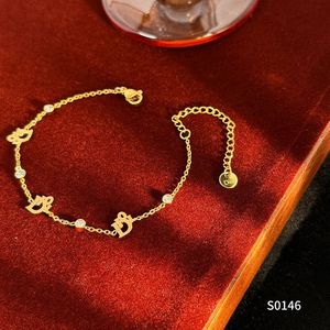 不掉色钛钢手链女欧美新款18K金色不锈钢D字母手链高级感