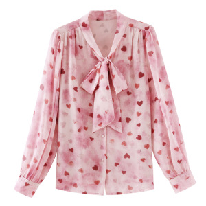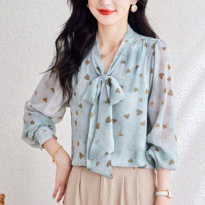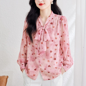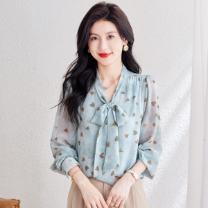 系带碎花淑女显瘦长袖上衣2025秋新款时尚百搭通勤气质衬衫女批发