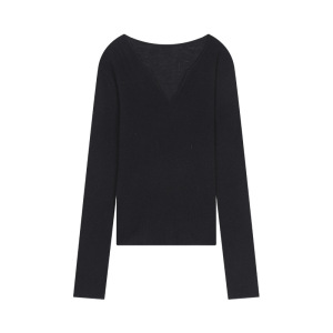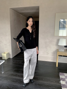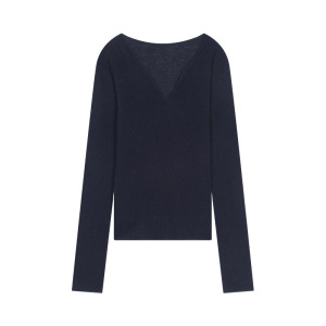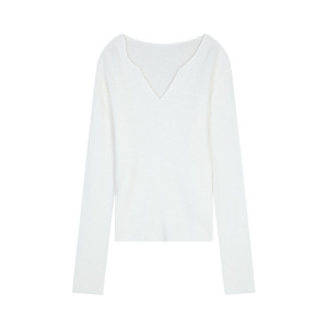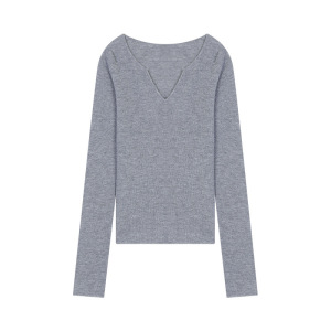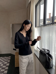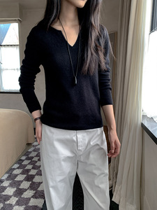 木兰 温柔小v领针织T恤女2025十三行秋新款亲肤软糯毛织上衣57235