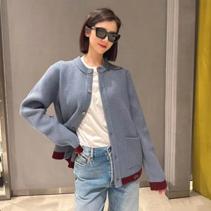 2025秋冬新款正确版本原标GU家撞色圆领单排扣长袖针织衫毛衣男女