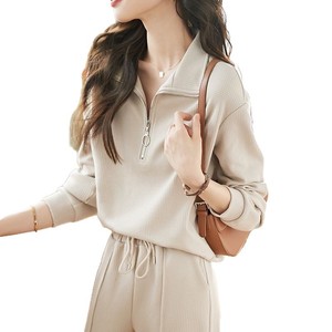 洋气时尚休闲两件套女秋季新款简约气质翻领长袖运动卫衣套装