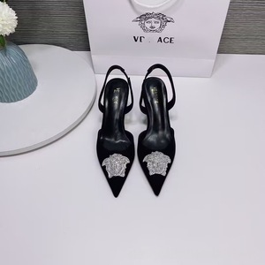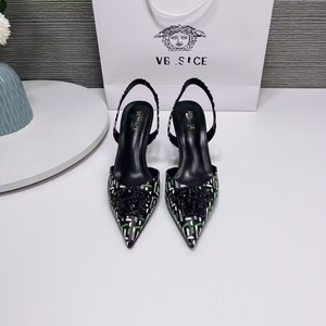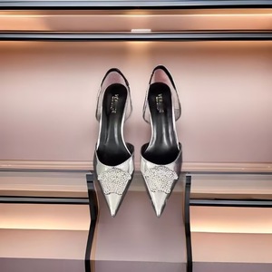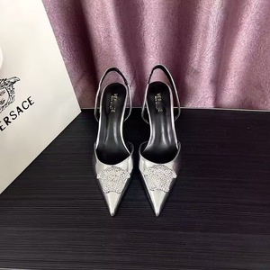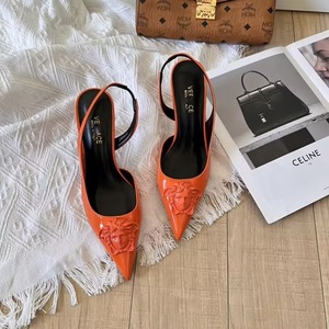 2024欧美高跟鞋软牛漆皮美人头包头中空后带高跟7cm凉鞋批透气
