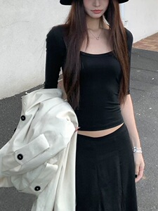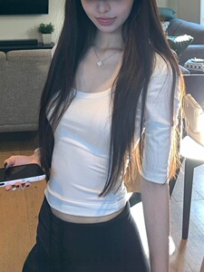 多色基础派!中袖针织tee 瘦瘦版型大U领