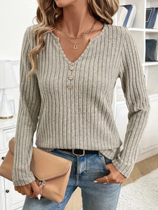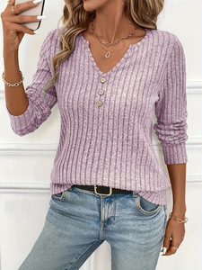 现货2025欧美跨境秋冬新款亚马逊长袖罗纹长袖T恤独立站速卖通