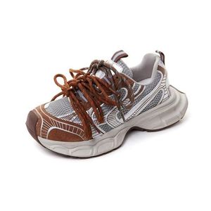 欧洲站厚底巴黎双系带撞色老爹鞋女2025秋季新款休闲运动减震轻便