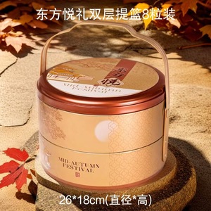 2025年新款月饼包装盒礼品盒马口铁空高档双层手提篮中秋月饼礼盒