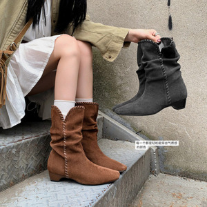 2025巨好看的靴子气质方头中粗跟美拉德百搭堆堆靴棕色短靴女