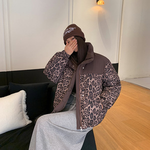 豹纹羽绒棉服女短款2025冬季新款加厚保暖面包服chic立领棉衣外套