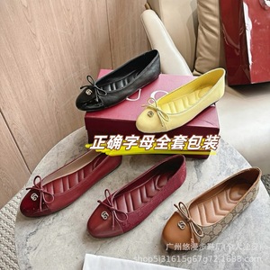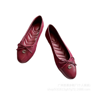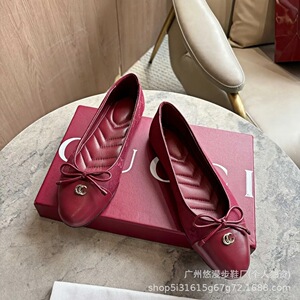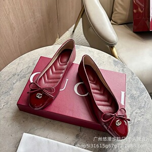 G家蝴蝶结平底芭蕾舞鞋女法式时尚浅口圆头金属字母扣玛丽珍单鞋
