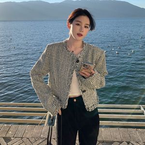 黑色条纹小香风外套女2025早秋新款法式气质感时髦百搭短上衣