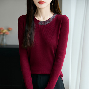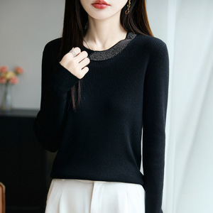 时尚镶钻百搭针织打底衫女2025新款春秋内搭大码毛衣秋冬女装上衣