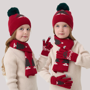 冬季儿童圣诞帽针织帽手套帽子围脖三件套冬季双层针织围脖