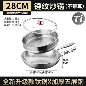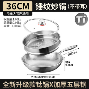 高端TI钛锅纯钛炒锅无涂层不粘锅鱼鳞锤纹钛炒锅家用炒菜锅电磁炉