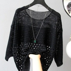 跨境时尚爆款镂空针织衫夏季短袖宽松薄款套头防晒罩衫上衣女外穿