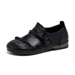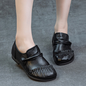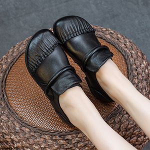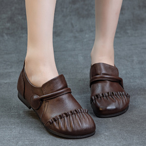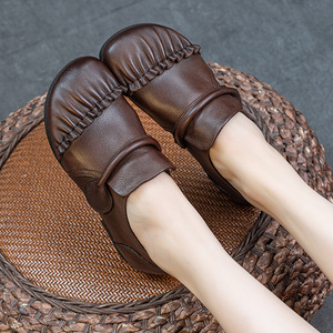 2025秋季新款真皮女鞋子平底软底头层软牛皮深口单鞋复古水洗擦色