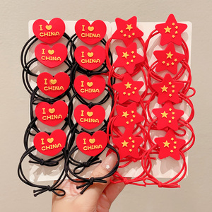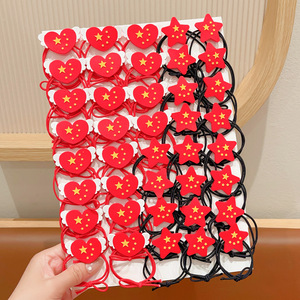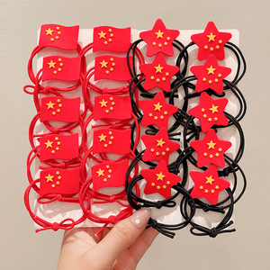 国庆发绳女儿童头绳节日发饰中国风五星红旗发圈小女孩扎头发皮筋