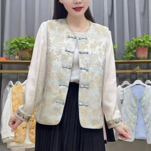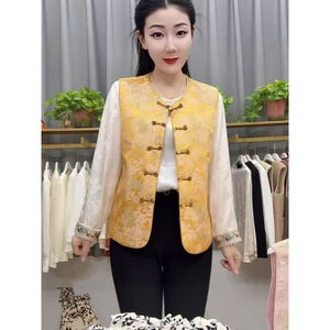 中老年女气质马甲时尚复古提花坎肩背心盘扣女装新款妈妈无袖上衣