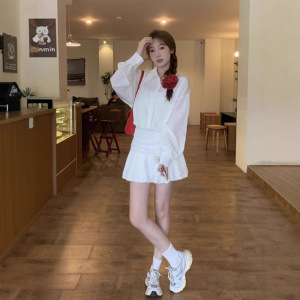夏日绝美穿搭雪纺白色收腰连衣裙子女2025早秋新款小个子套装短裙