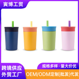 owalal保温杯儿童吸管304不锈钢双层便携吸管杯批发韩式保温杯