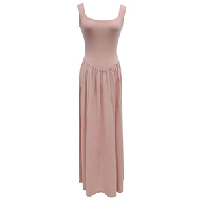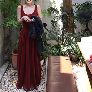 8061法式复古红色长裙秋季羊毛混纺方领遮副乳露背褶皱垂感大摆裙