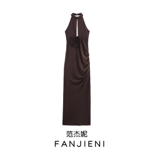 ZR外贸批发 欧美风女装 时尚气质花朵挂脖领露背连衣裙 1131832