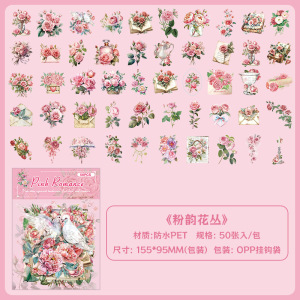 复古植物可爱花卉贴纸防水儿童粘贴手账日记装饰素材图案diy贴画