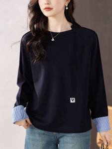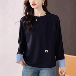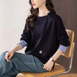 拼接撞色设计感长袖卫衣女秋装新款宽松显瘦套头上衣