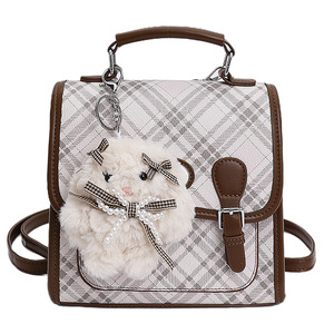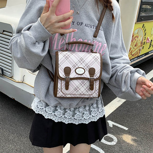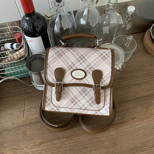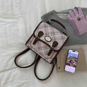 韩国小众设计菱格纹双肩包时尚2025新款休闲手提多用外出背包斜挎