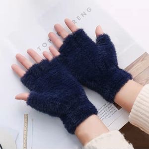 半指翻盖手套冬季女士防寒保暖毛线秋冬露指学生写字水貂毛保暖