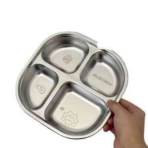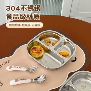 不锈钢304儿童餐盘宝宝吃饭卡通盘家用学生便携分格便当盘食品级