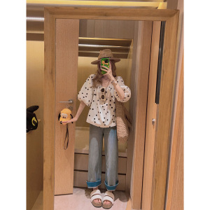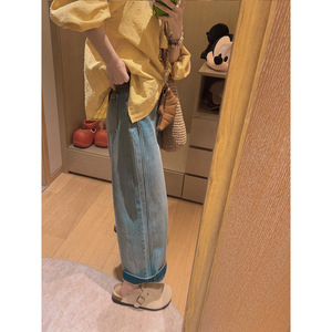产后可穿孕妇牛仔裤九分卷边阔腿裤直筒裤外穿春秋无托腹抽绳长裤