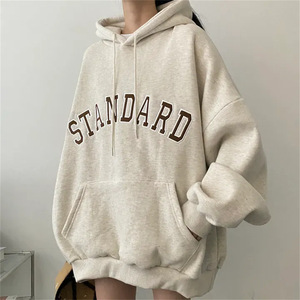 潮牌韩版宽松字母绣花连帽卫衣女春秋休闲长袖外套加厚加绒上衣潮