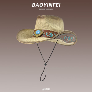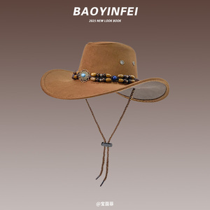 美式复古西部牛仔帽子女夏季川西新疆旅游穿搭遮阳防晒草原骑士帽