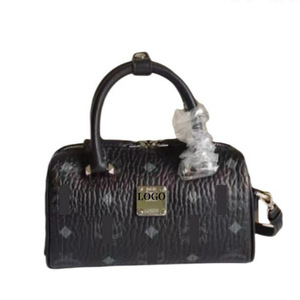 带logoM枕头包C波士顿M单肩斜挎手提圆筒包包女真皮女包字母装饰
