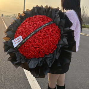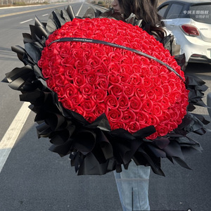 【热恋】99朵 圆满红玫瑰黑纱 顺丰送花到家