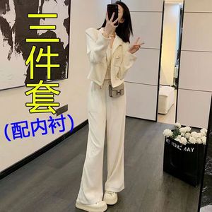 欧货休闲运动套装女秋季时髦洋气白色小香风卫衣阔腿裤气质三件套