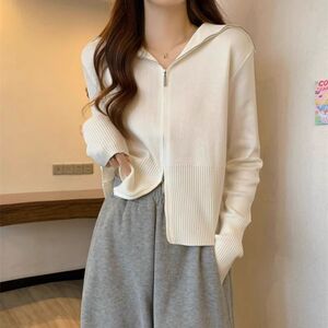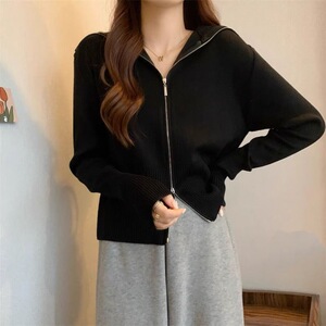 设计感双拉链长袖针织T恤女秋装修身显瘦开衫短款外套上衣服ins