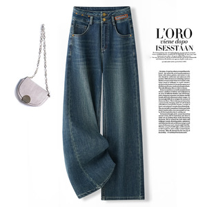 高腰时尚百搭显高显瘦牛仔裤女2025新款宽松休闲双排扣直筒长裤